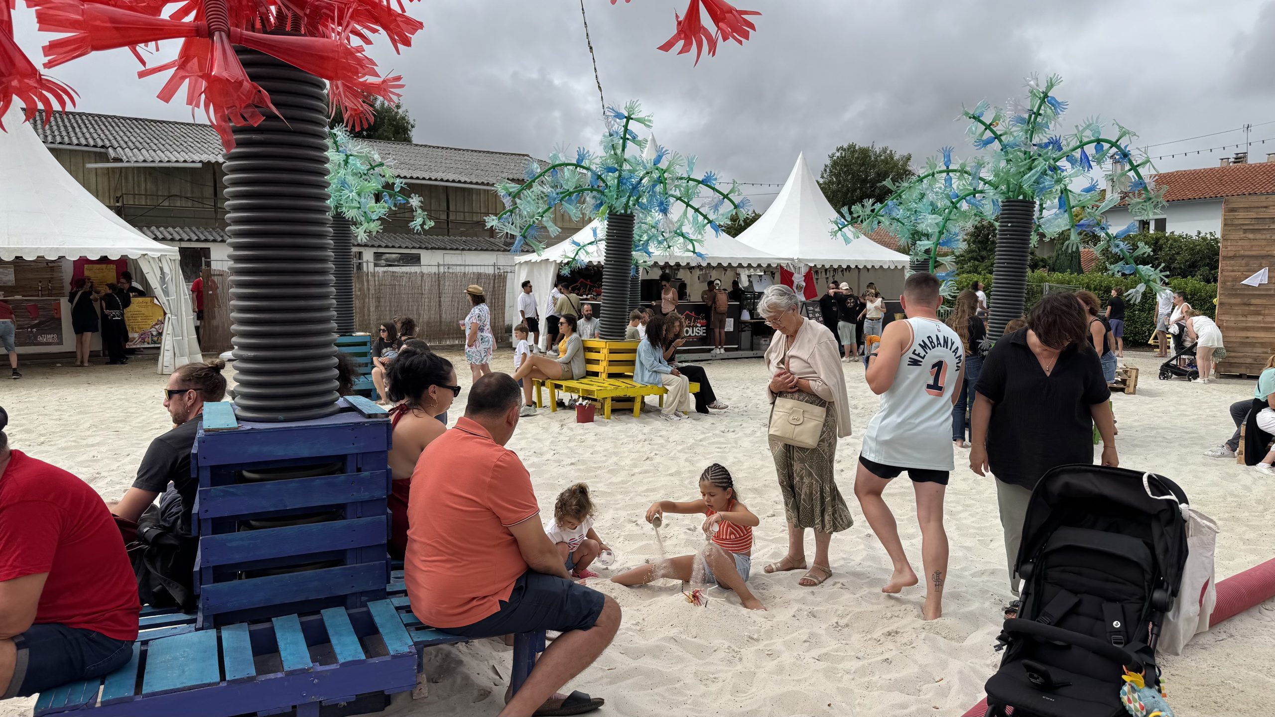 Éco-décoration du Festival à partir de matériaux recyclés (palmiers psychédéliques en bouteilles plastiques et gaines, guirlandes de bouchons, casas en bois et en bambous…). Ateliers d’éco-décorations.